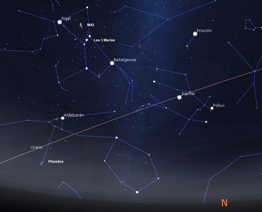(6 Marzo, 2026) Como todos los planetas exteriores a la órbita de la Tierra en el Sistema Solar, Júpiter presenta en algunos puntos de su órbita un movimiento retrógrado, lo vemos desplazarse de Este a Oeste, en contra del desplazamiento de los planetas alrededor del Sol de Oeste a Este.